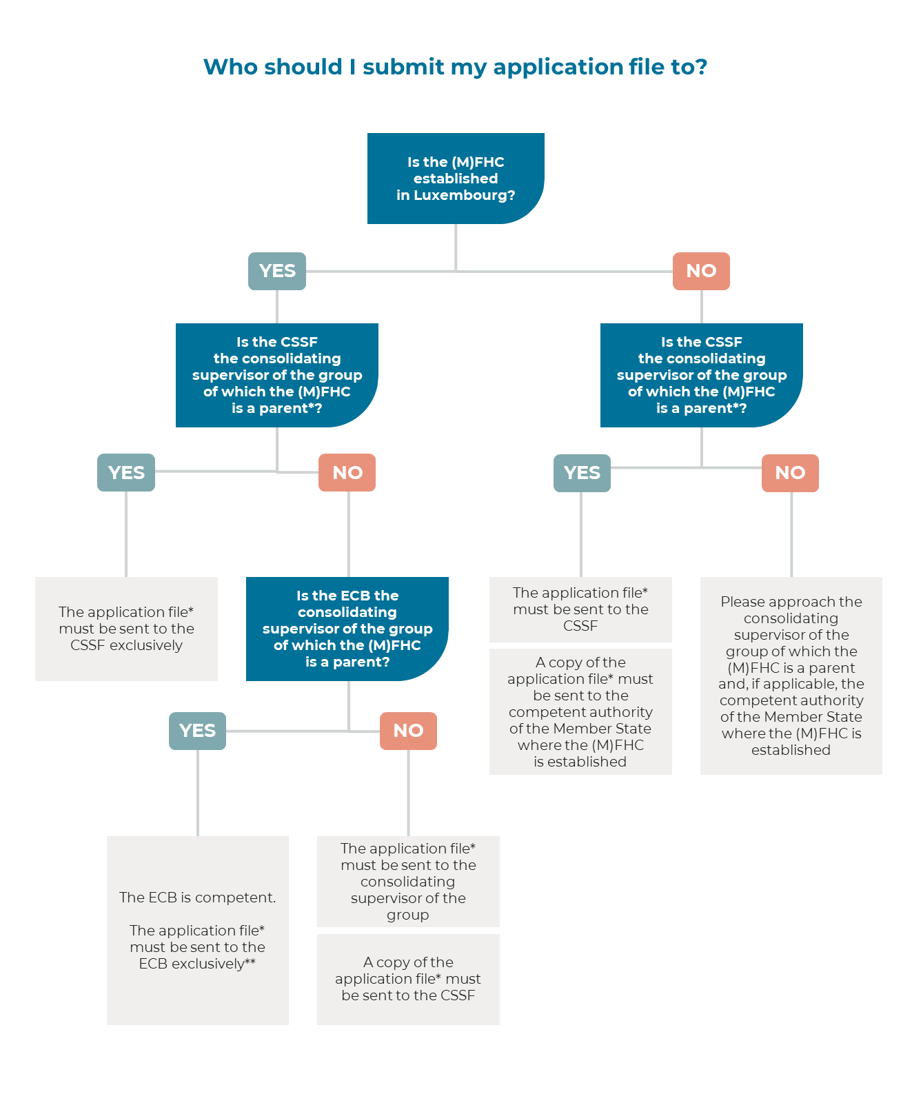 (M)FHCs shall seek an approval and submit the application file, with the supporting documentation as disclosed in Article 21a(2) of the CRD V and in Article 34-2(3) of the LFS, to the competent authority in charge of the supervision of the group on a consolidated basis and, where the (M)FHC is established in a different Member State, also to the competent authority of the Member State where the (M)FHC is established. In this latter case, both the consolidating supervisor and the competent authority of the Member State where the (M)FHC is established shall endeavour to reach a joint decision to approve the (M)FHC.