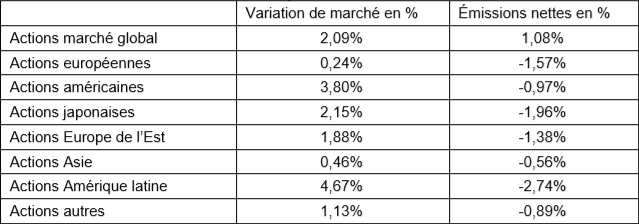 Au cours du mois de juillet, les catégories d’OPC à actions ont globalement affiché un investissement net en capital négatif.