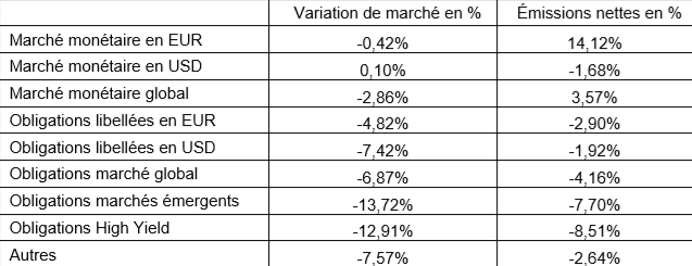 Concernant d’une part l’impact des marchés financiers sur les principales catégories des organismes de placement collectif et d’autre part l’investissement net en capital dans ces mêmes OPC, les faits suivants sont à relever pour le mois de mars.